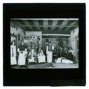Wien (Aufnahmeort)Diapositiv: Paradeisspiel, Adam und der Tod, 1911, Kindberg, Steiermark