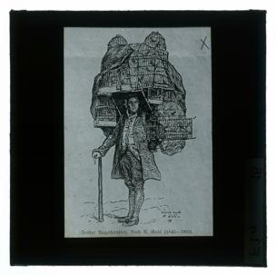 Vogelhändler a. Imst. Rauriser Schmied (Originaltitel)[Wien 8., Laudongasse 15-19?] (Aufnahmeort)Diapositiv: Imster Vogelhändler, Reproduktion nach Alois Gabl