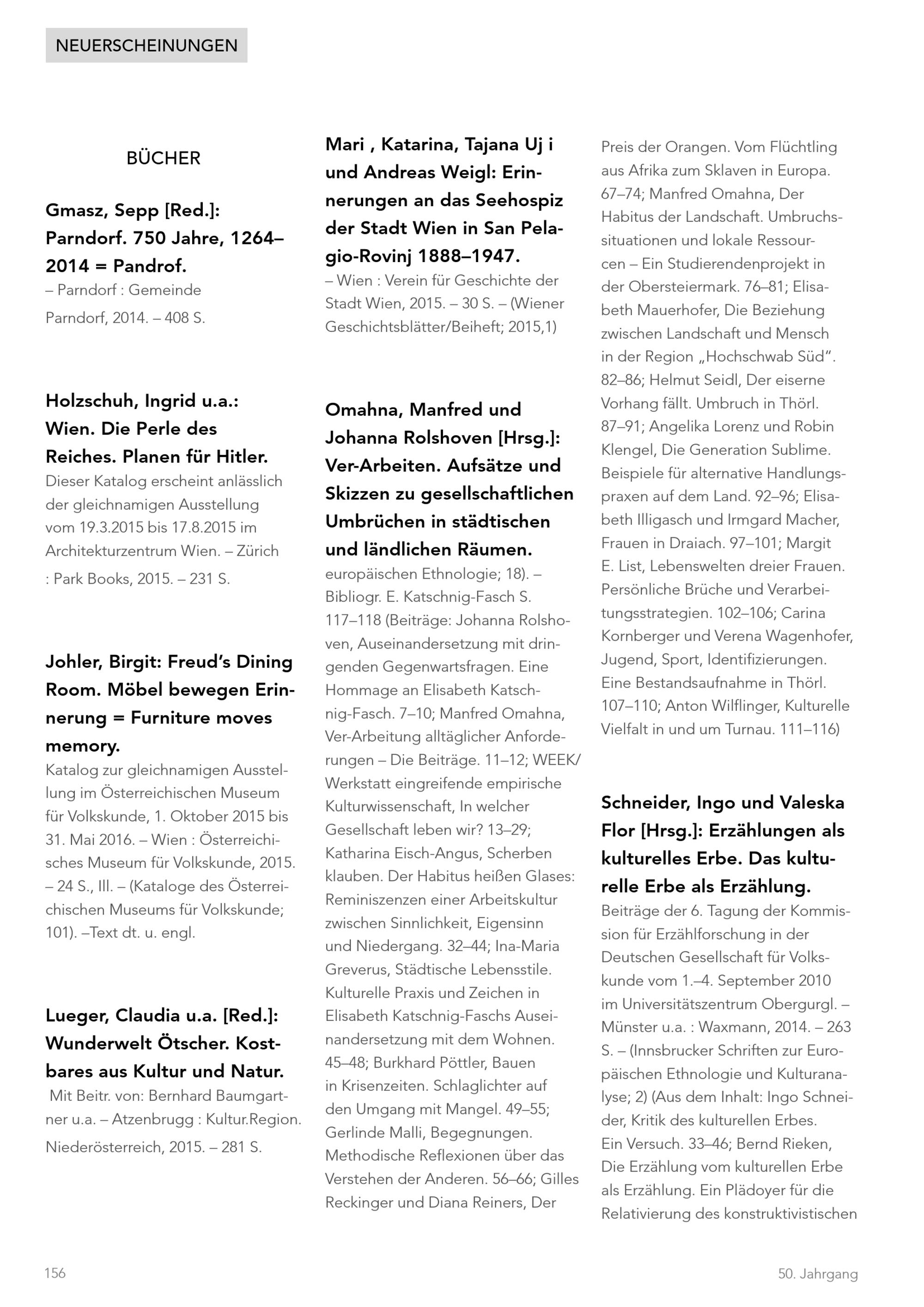 50 (2015) / Nachrichten. Volkskunde in Österreich