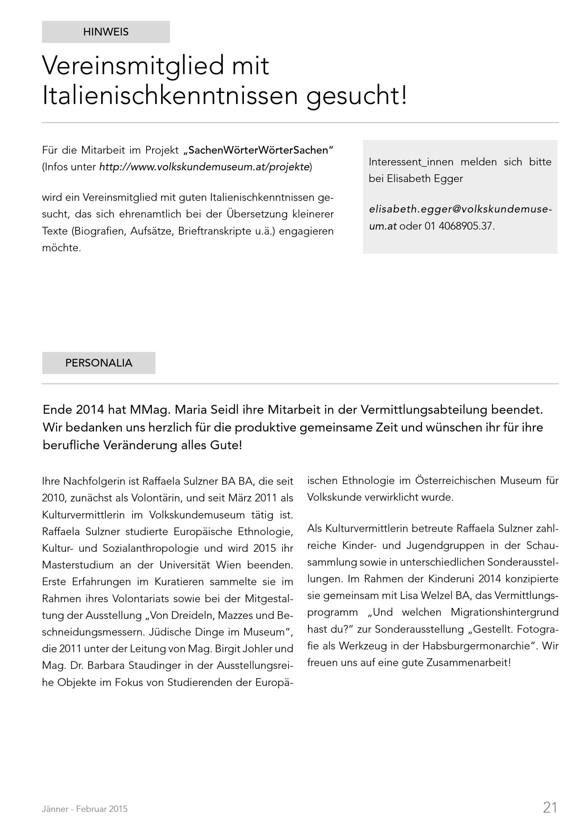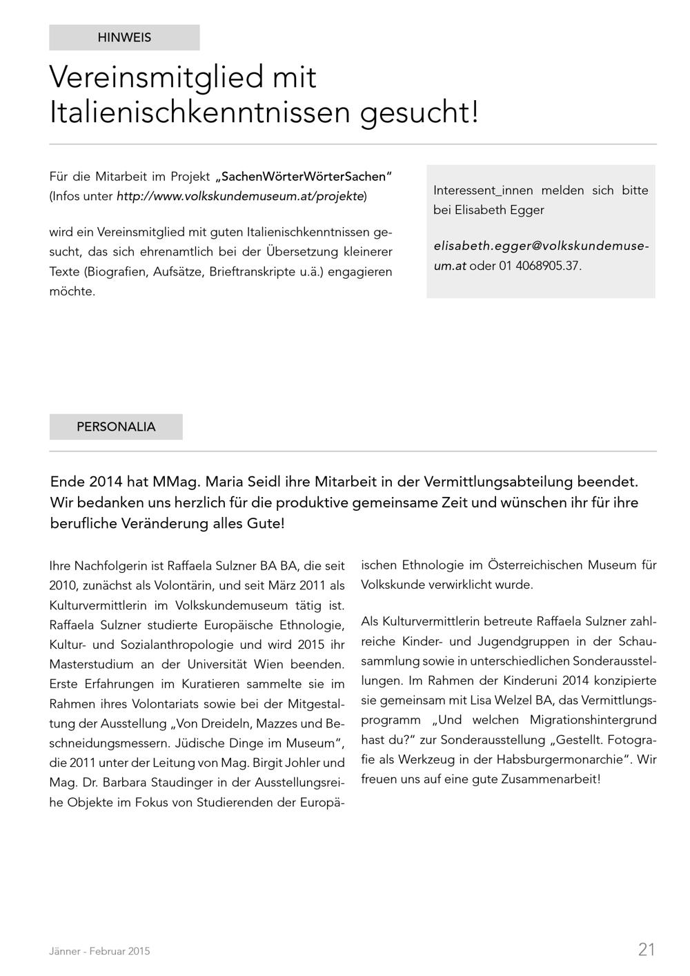 Nachrichten. Volkskundemuseum Wien