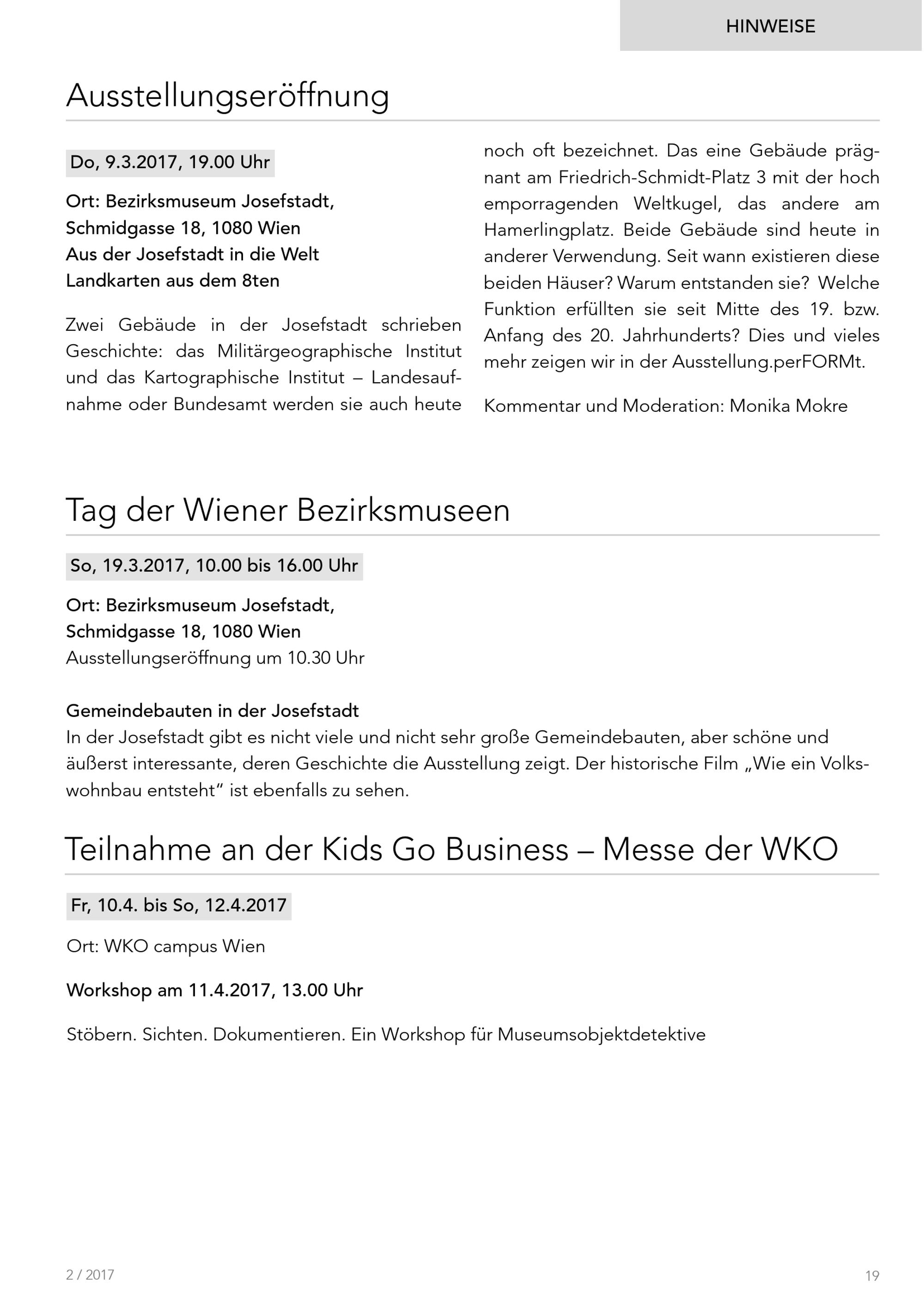 Nachrichten. Volkskundemuseum Wien