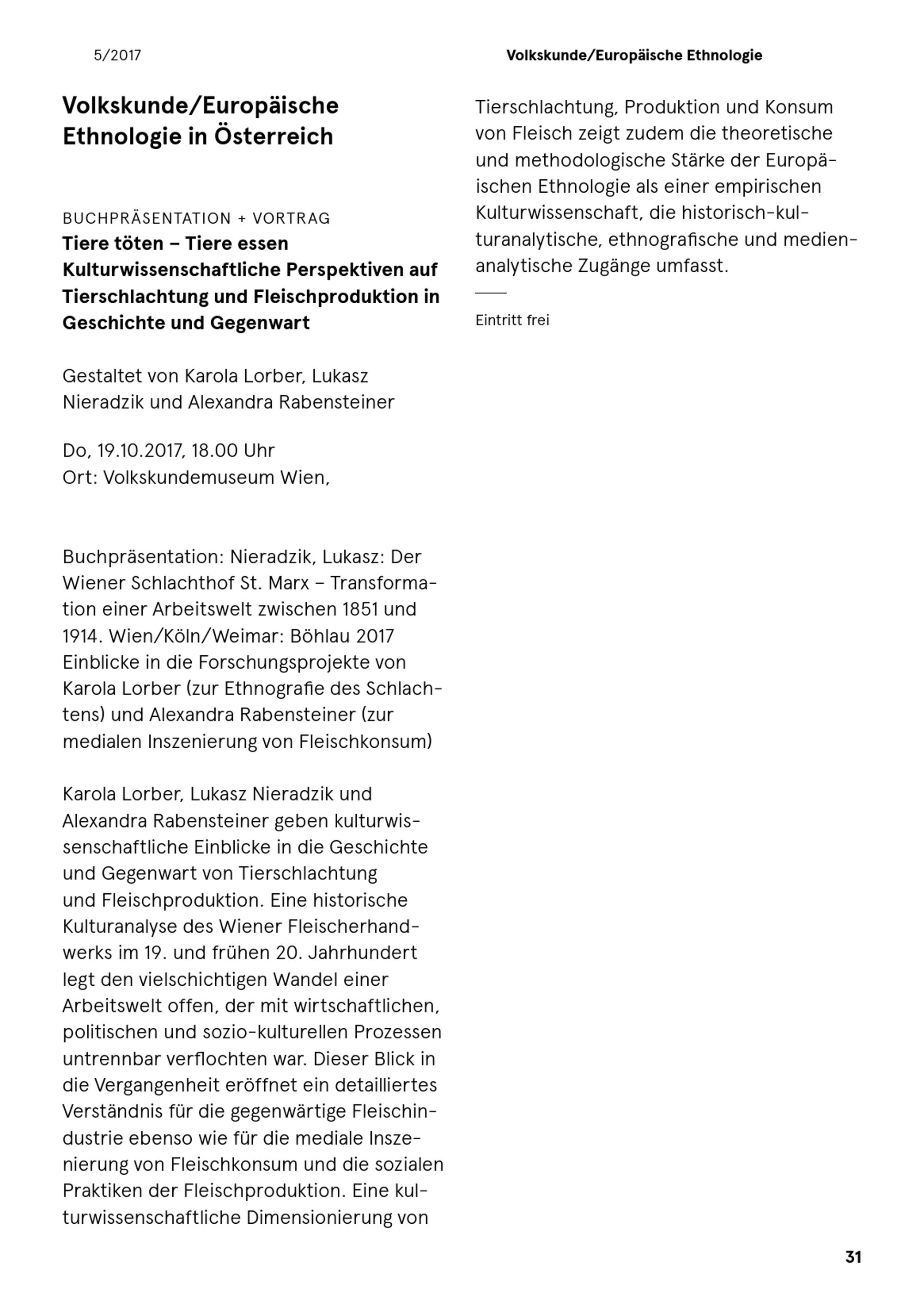 Nachrichten. Volkskundemuseum Wien
