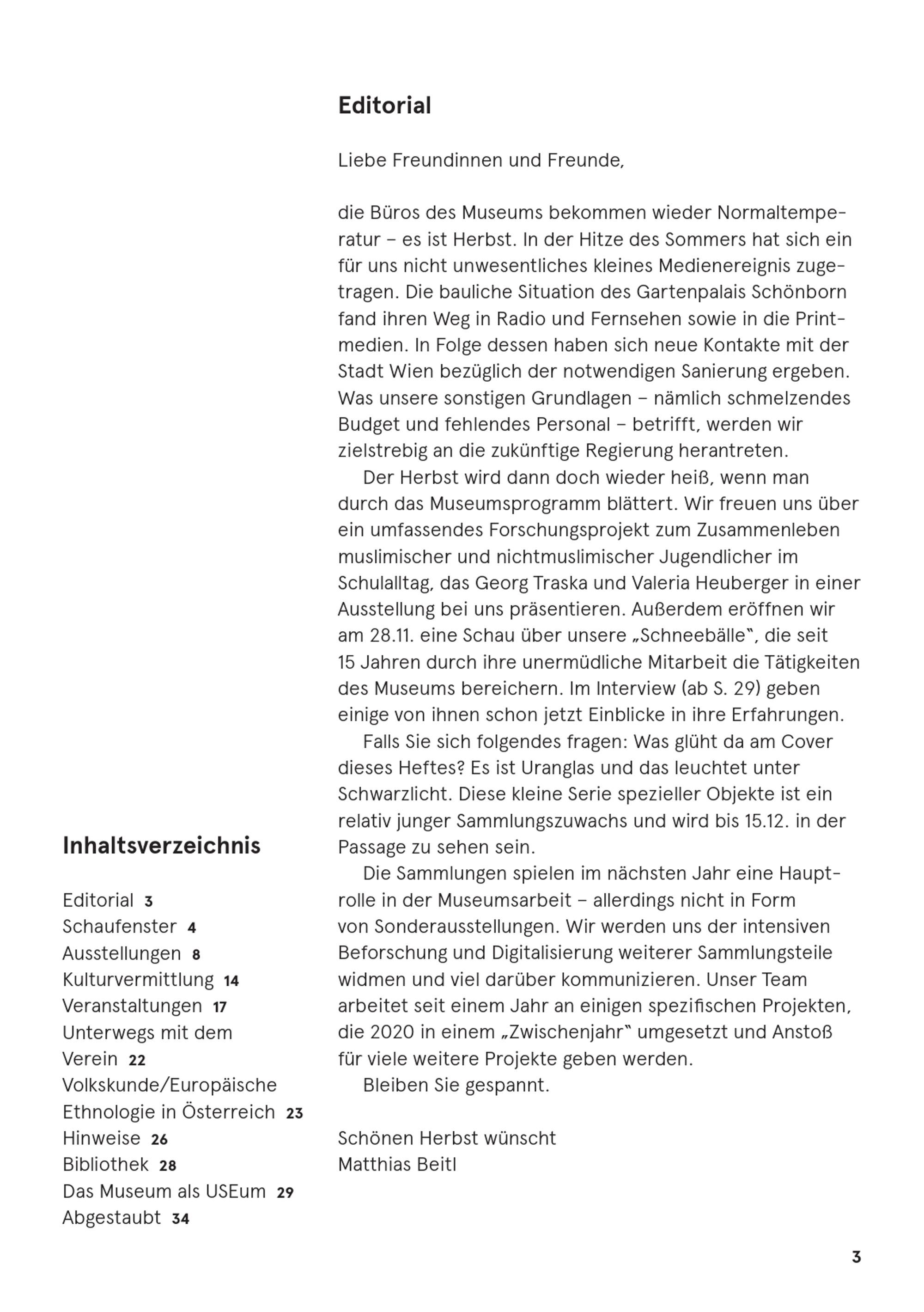 Nachrichten. Volkskundemuseum Wien