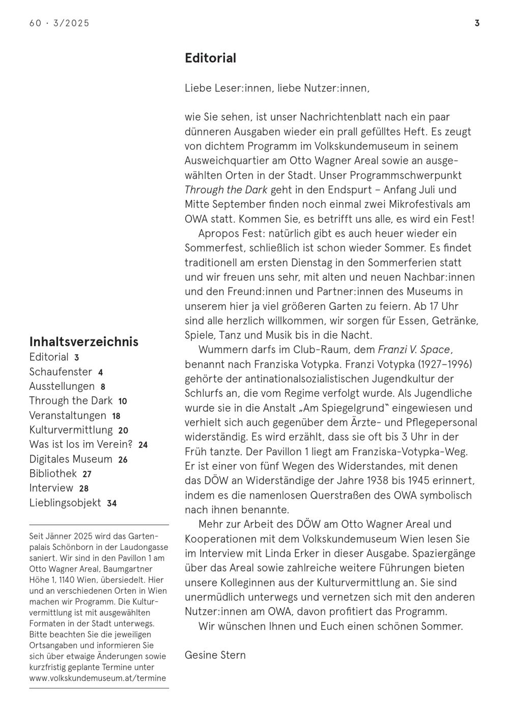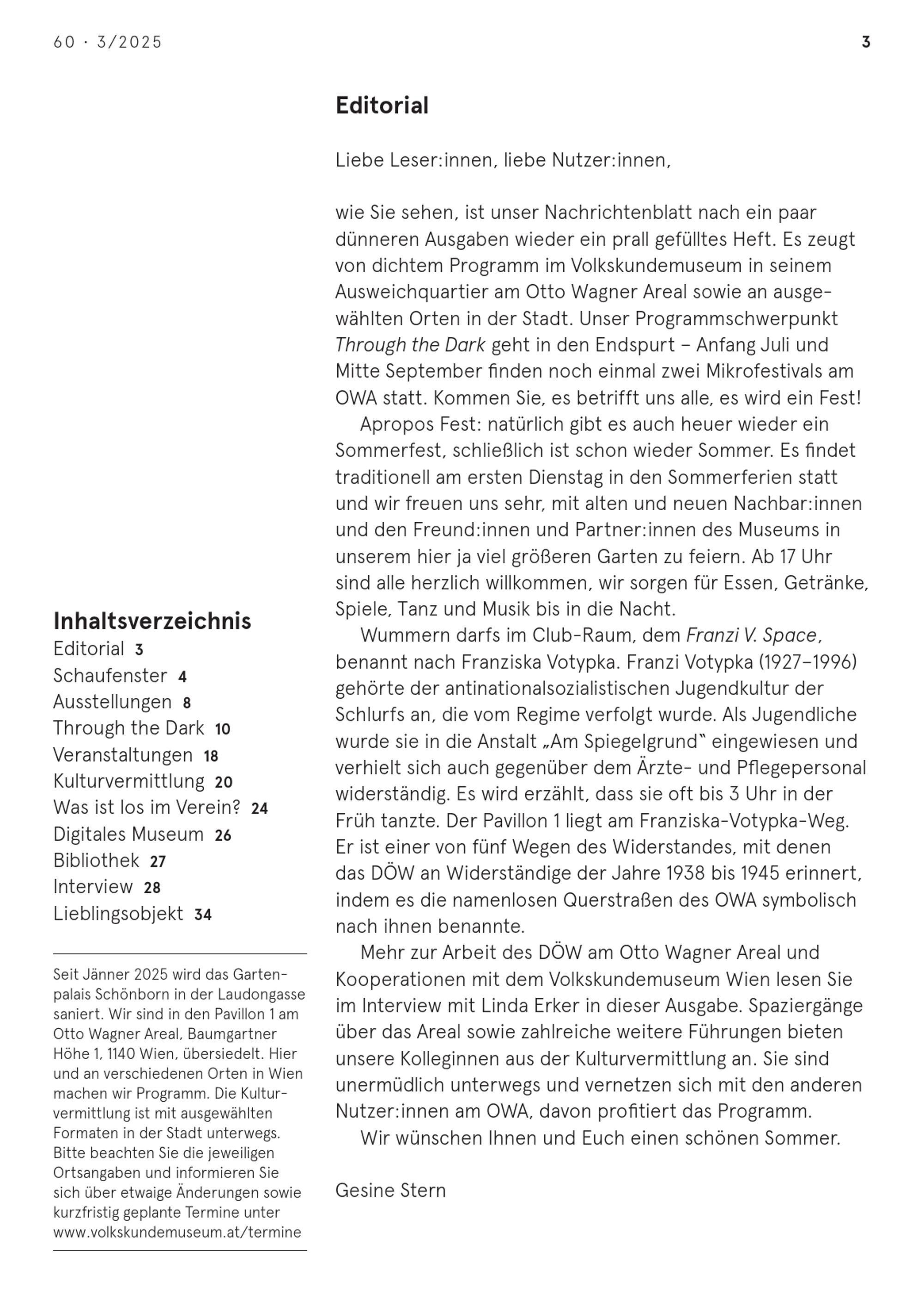 Nachrichten. Volkskundemuseum Wien