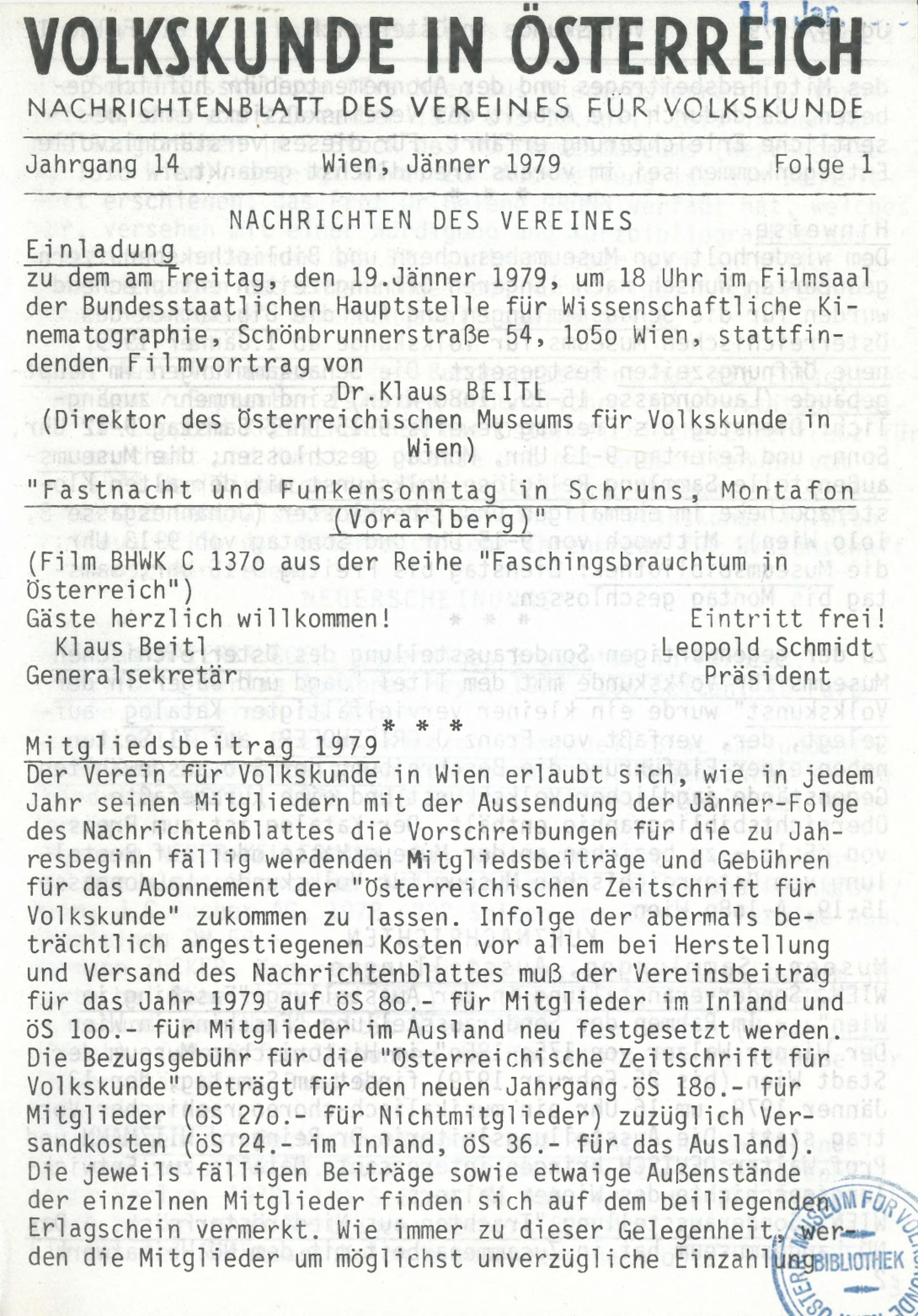 14 (1979) / Volkskunde in Österreich VIÖ
