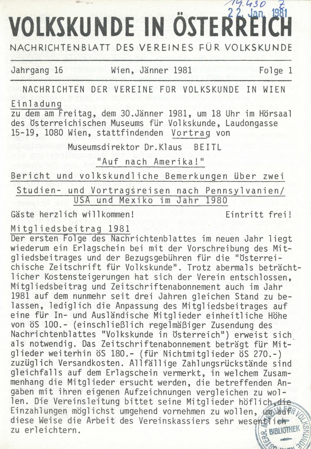 16 (1981) / Volkskunde in Österreich VIÖ