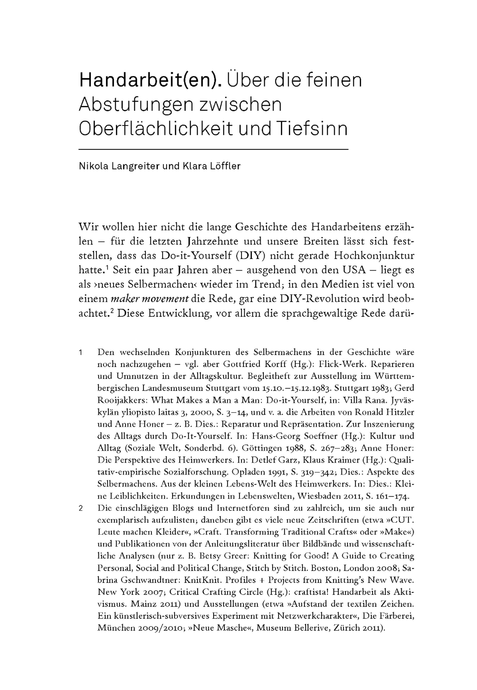 Langreiter, Nikola; Löffler, Klara: Handarbeit(en)