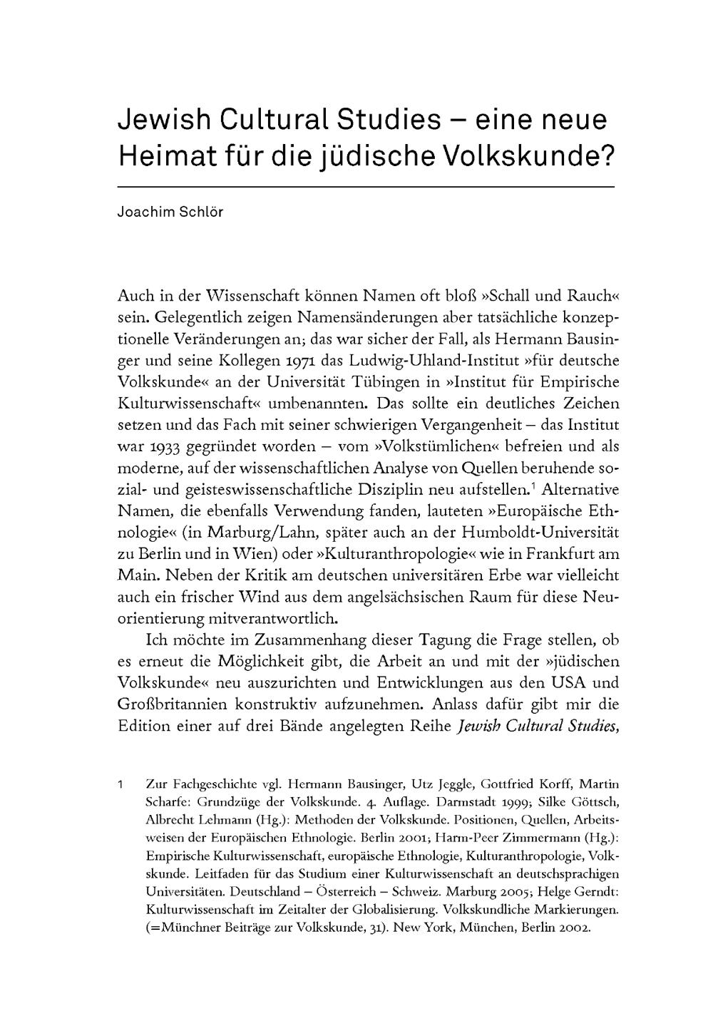 Schlör, Joachim: Jewish Cultural Studies – eine neue Heimat für die jüdische Volkskunde?