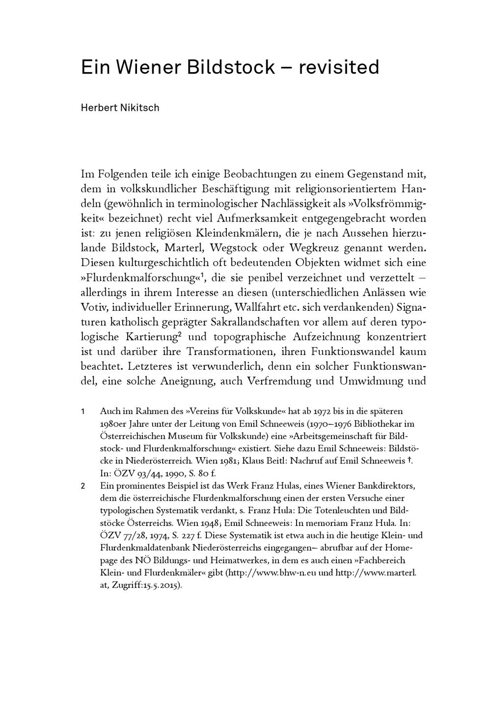 Nikitsch, Herbert: Ein Wiener Bildstock – revisited