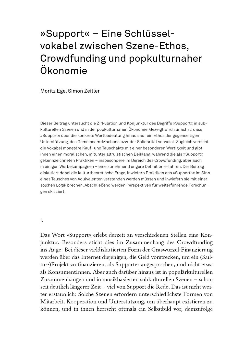 Ege, Moritz; Zeitler, Simon: »Support«