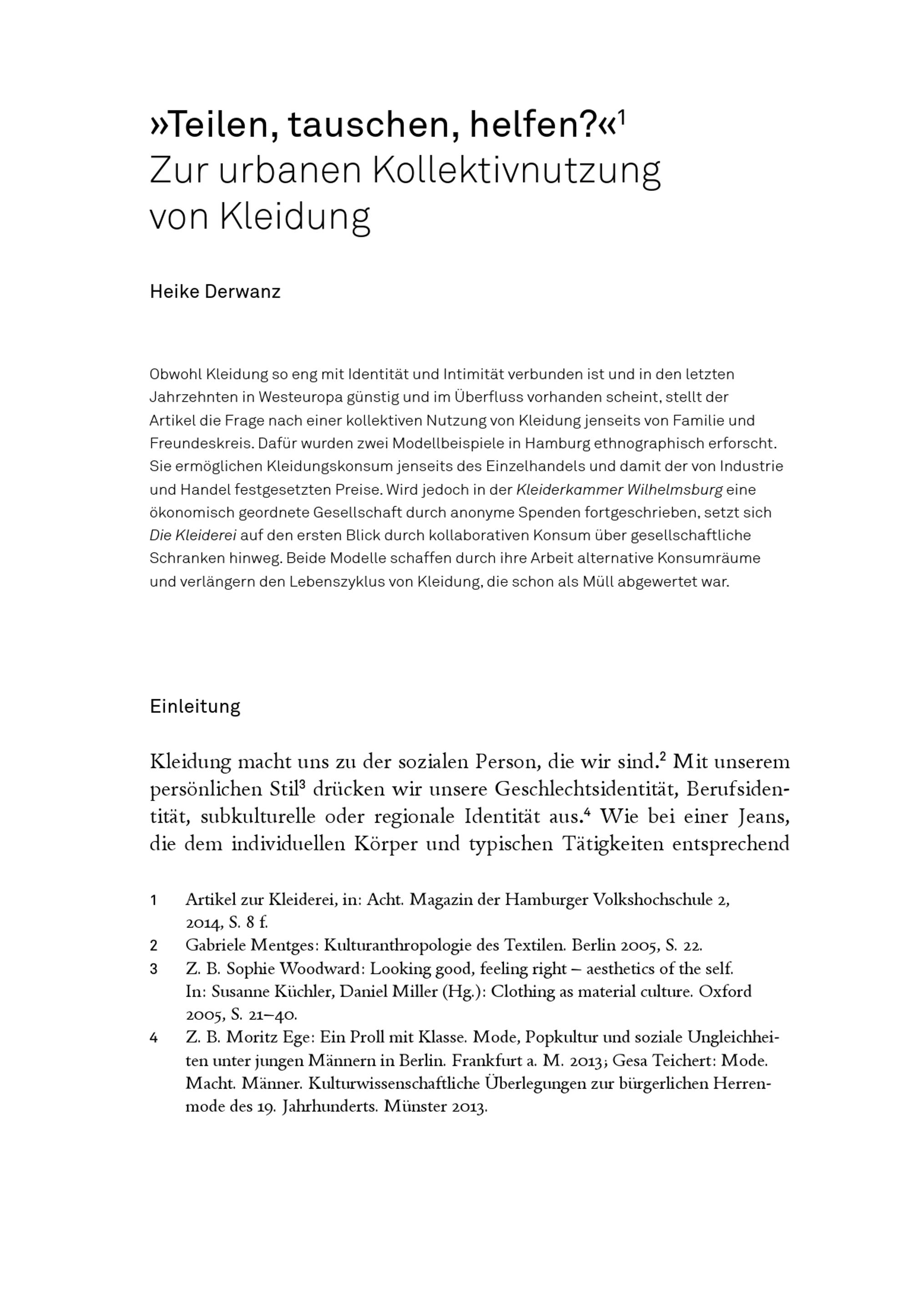 »Teilen, tauschen, helfen?« : zur urbanen Kollektivnutzung von Kleidung