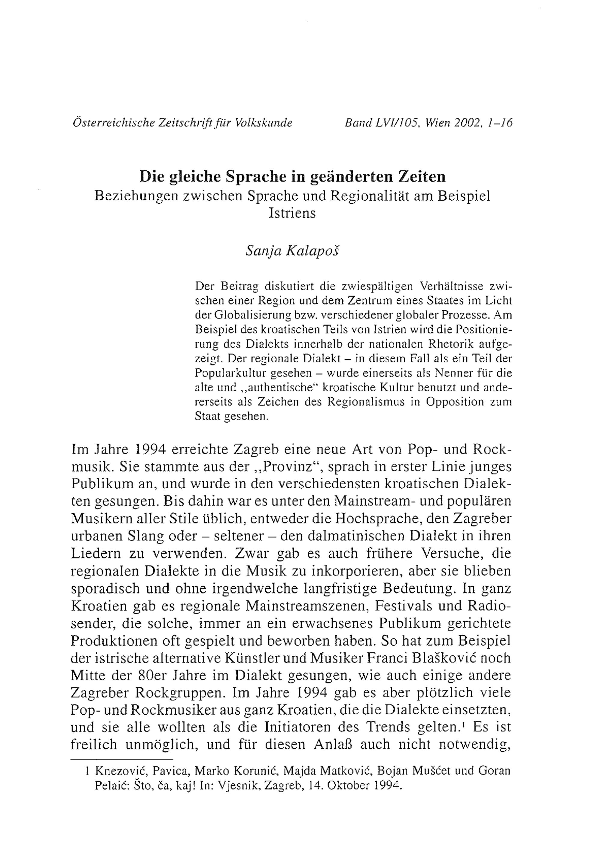Die gleiche Sprache in geänderten Zeiten : Beziehungen zwischen Sprache und Regionalität am Beispiel Istriens