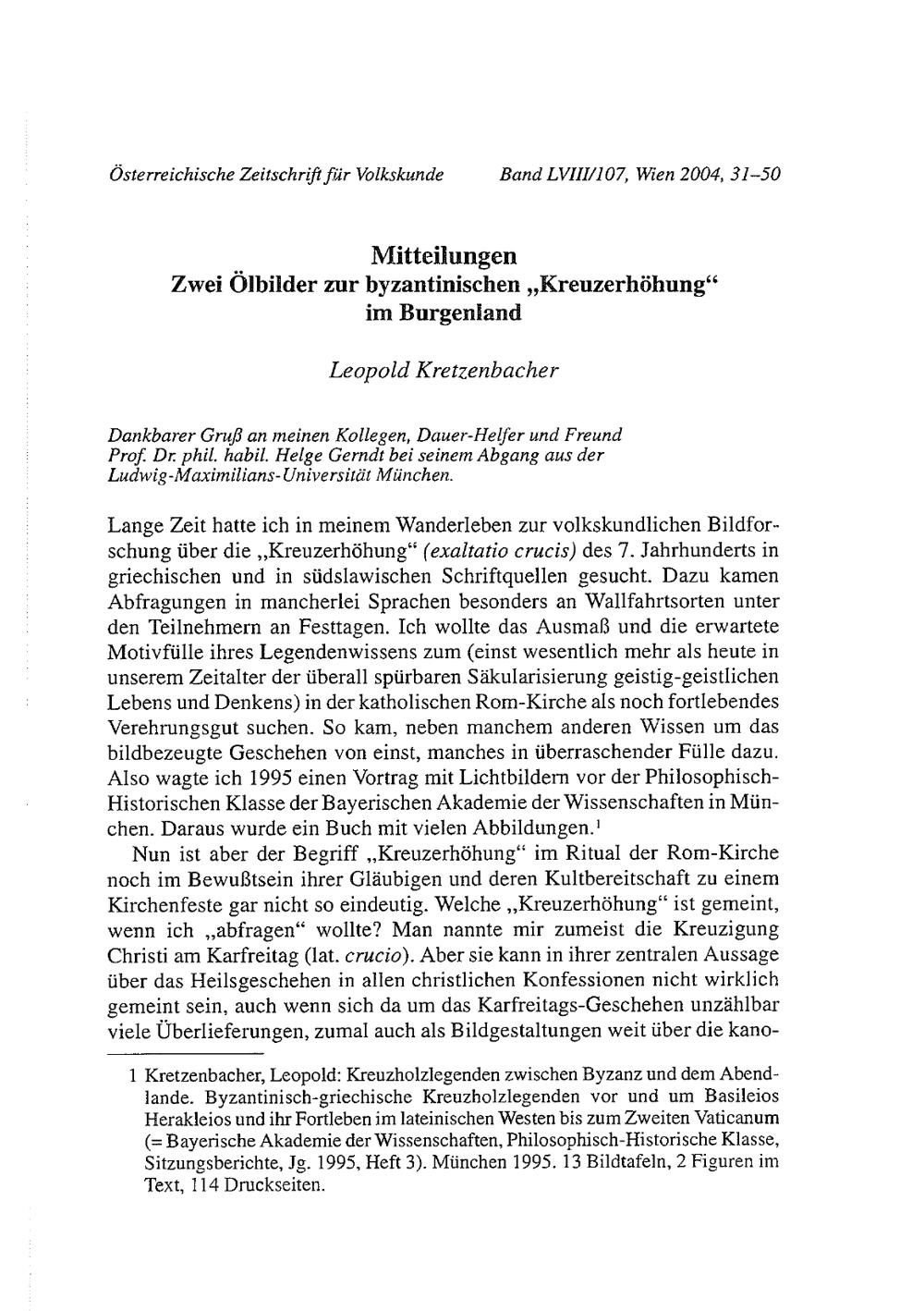 Kretzenbacher, Leopold: Zwei Ölbilder zur byzantinischen „Kreuzerhöhung“ im Burgenland