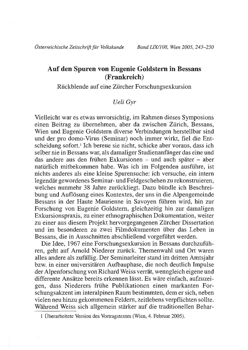 Gyr, Ueli: Auf den Spuren von Eugenie Goldstern in Bessans (Frankreich)