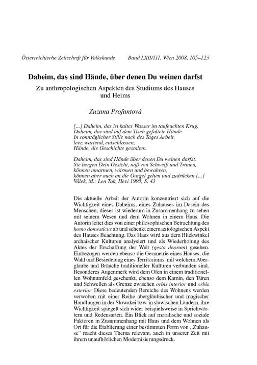 Daheim, das sind Hände, über denen Du weinen darfst : Zu anthropologischen Aspekten des Studiums des Hauses und Heims