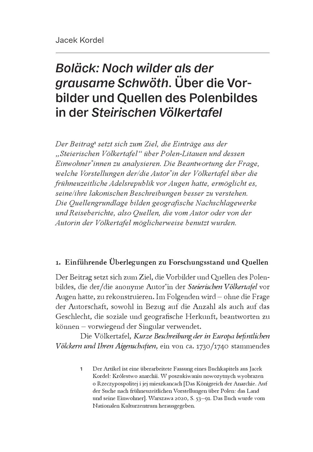 Boläck: Noch wilder als der grausame Schwöth : über die Vorbilder und Quellen des Polenbildes in der Steirischen Völkertafel