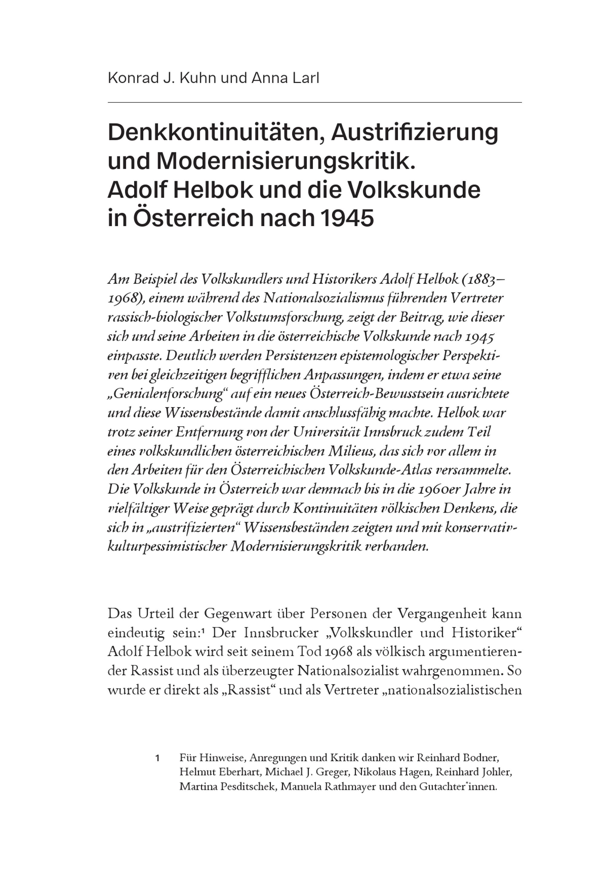 Kuhn, Konrad J.; Larl, Anna: Denkkontinuitäten, Austrifizierung und Modernisierungskritik.